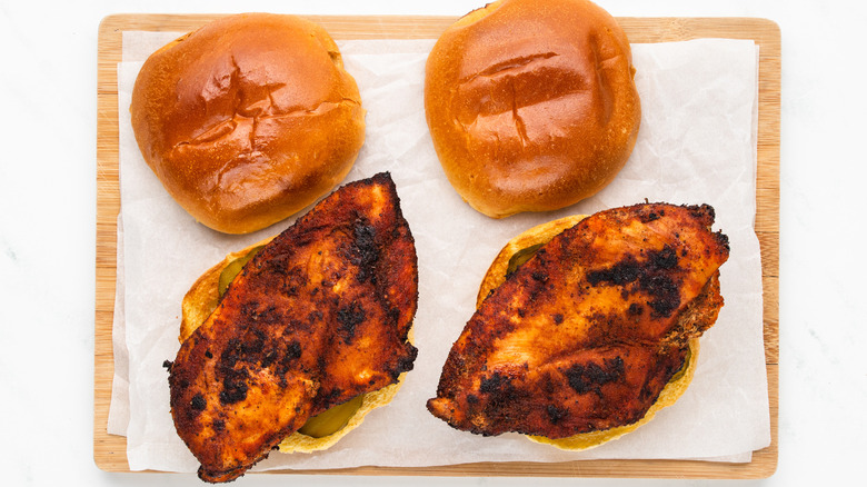 If nothing sounds better than a classic Popeyes blackened chicken sandwich, there's no need to wait in a long drive-thru line. With this easy recipe by Catherine Brookes, you can enjoy the bold, spicy flavors of this popular sandwich at home. There are just a handful of ingredients required, many of which you'll likely already have in the fridge or pantry, with everything coming together in under 30 minutes too.